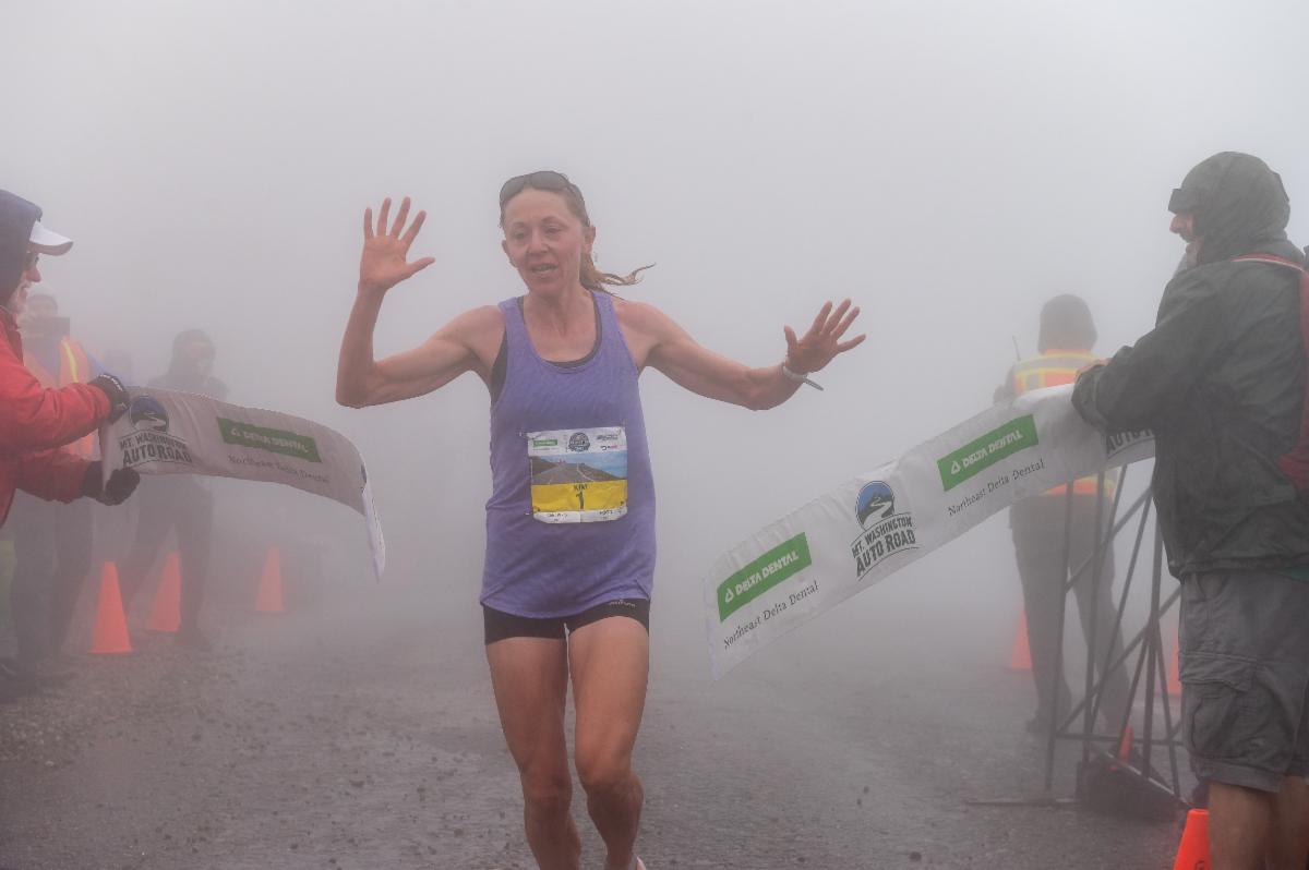 Kim Dobson, 37, of Eagle, CO, ran away from the field to win the Northeast Delta Dental Mount Washington Road Race in a time of 1:11:16.